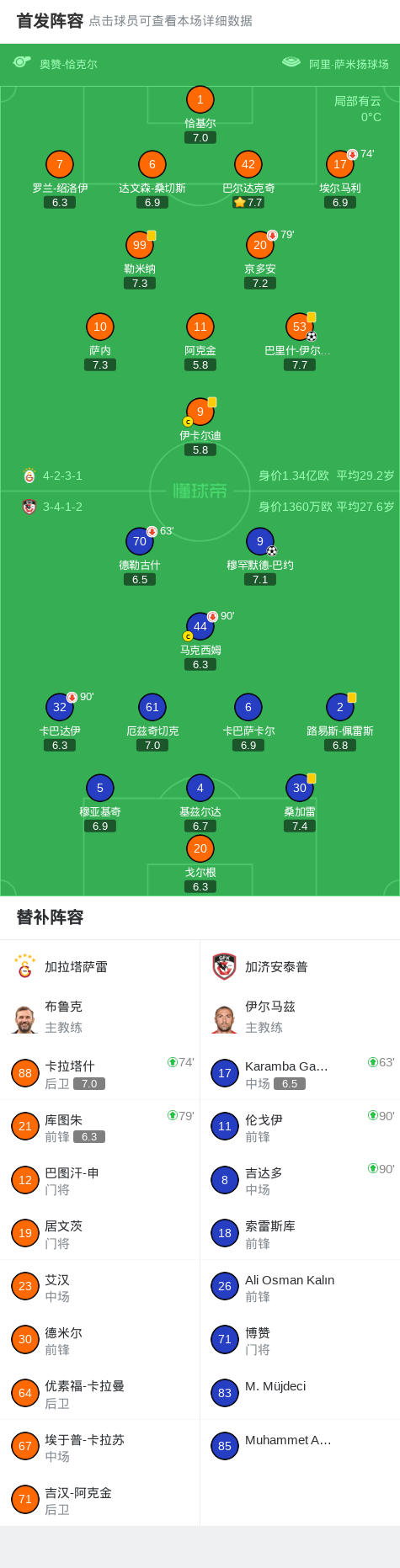 第84分钟,加拉塔萨雷球员巴里什-伊尔马兹打入一球。