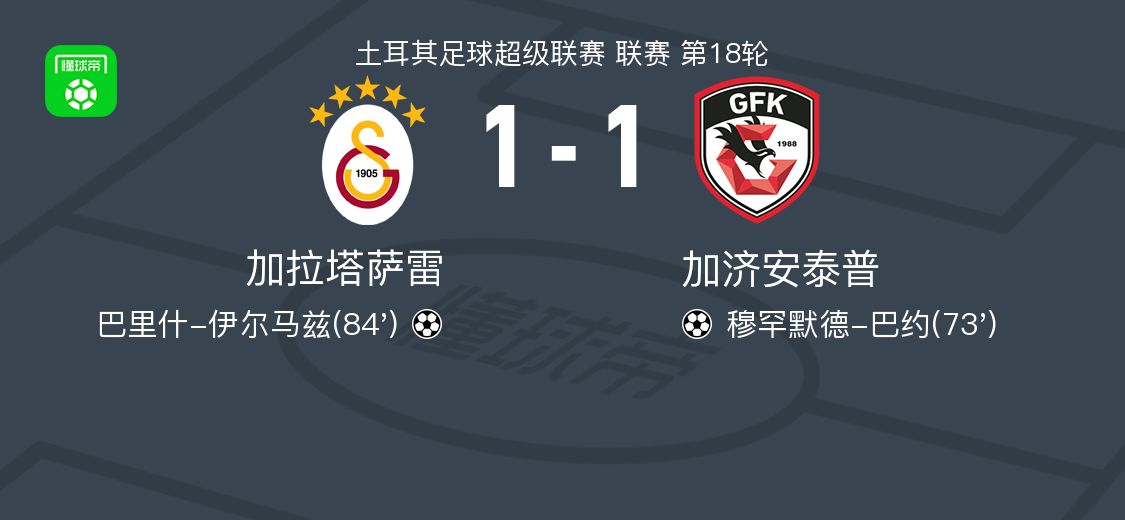 北京时间1月18日,土耳其足球超级联赛第18轮,加拉塔萨雷主场迎战加济安泰普。比赛中,加济安泰普由穆罕默德-巴约率先取得进球。随后,加拉塔萨雷由巴里什-伊尔马兹攻入一球,扳平比分。最终双方以1比1握手言和。