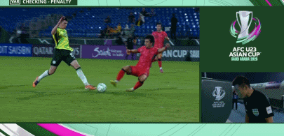 第40分钟,马蒂亚斯-麦卡利斯特造点,傅明观看VAR后取消点球