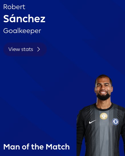 英超第22轮,切尔西主场2-0击败布伦特福德,此役完成6次扑救的切尔西门将罗伯特-桑切斯当选全场最佳球员。