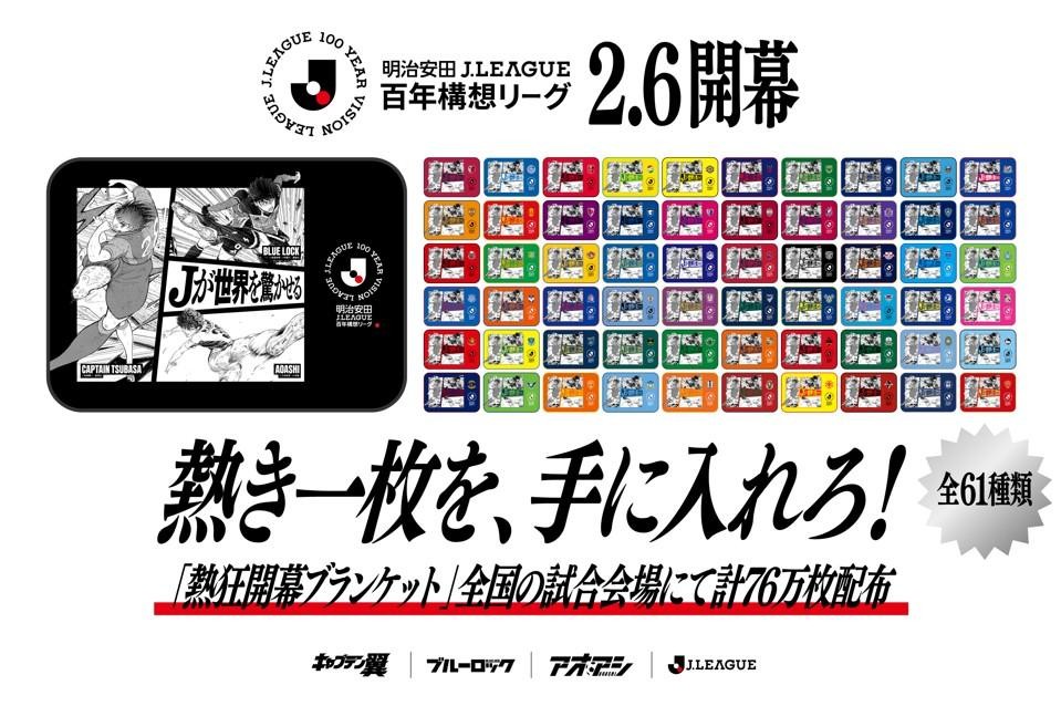为纪念将于2026年2月6日(周五)揭幕的J 联赛百年构想联赛(2026年过渡赛季),J联赛官方将在2026年2月至3月的开幕阶段指定赛事中,向到场观赛的球迷们赠送各俱乐部专属定制毛毯。本次赠品总计76万条,涵盖全部61款设计样式。