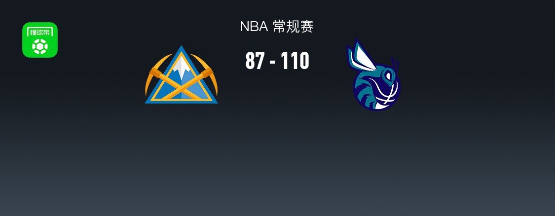第四节掘金斯特劳瑟拿下10分,黄蜂卡尔克布伦纳拿下13分,最终掘金87-110不敌黄蜂