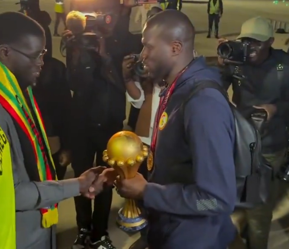 1月20日,刚刚夺得2025年非洲杯冠军的塞内加尔国家队携非洲杯冠军奖杯荣耀归国,在达喀尔机场受到了最高规格的欢迎。塞内加尔总统巴西鲁-迪奥马耶-法耶亲赴机场迎接球队,与球员和教练组一一握手致意,向这支为国家赢得荣耀的冠军之师表示祝贺。