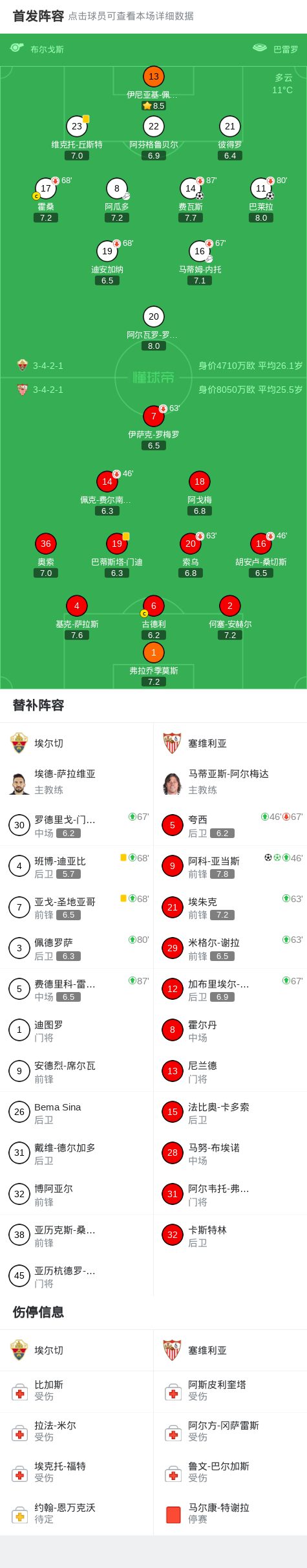 北京时间1月20日西班牙足球甲级联赛 联赛 第20轮,埃尔切主场对阵塞维利亚。埃尔切费瓦斯破门,巴莱拉破门。塞维利亚阿科-亚当斯梅开二度。最终比分埃尔切 2–2 塞维利亚。