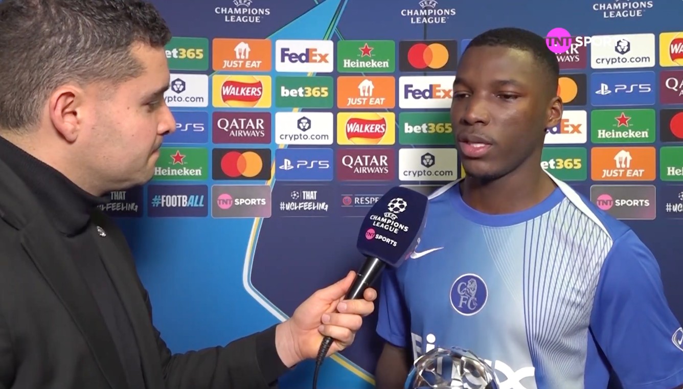 我们现在在伦敦斯坦福桥,和莫伊塞斯-凯塞多在一起。这座非常漂亮的奖杯是本场比赛的最佳球员奖。非常感谢你抽出时间。祝贺你获得这个奖项,也祝贺你在欧冠中进球。你现在的感受如何?