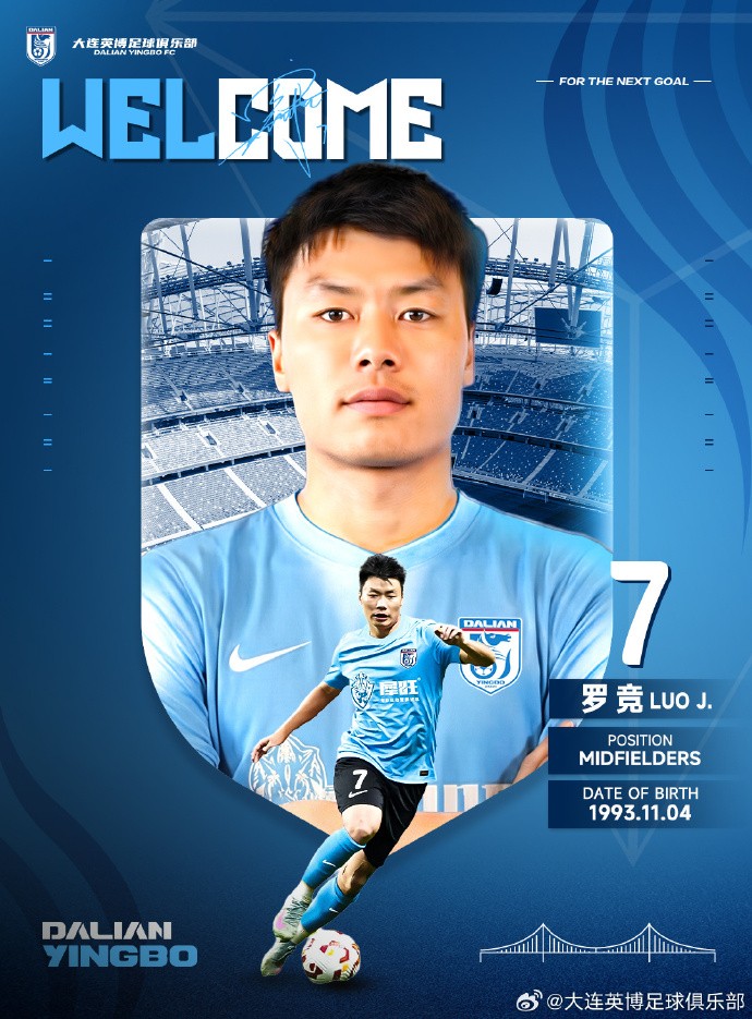 英博2026·官宣 | 欢迎罗竞加盟大连英博足球俱乐部
