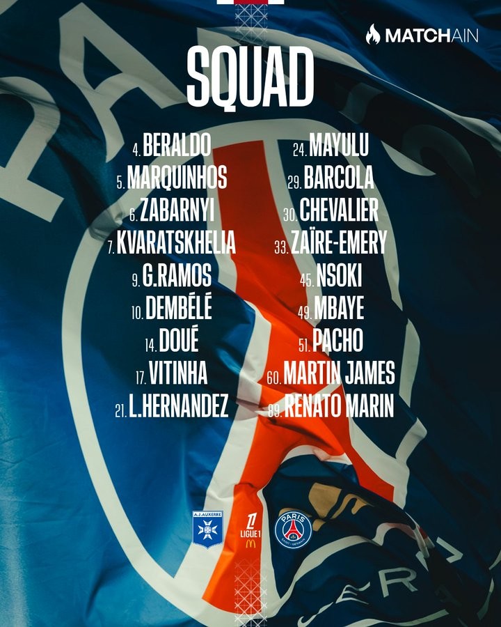 北京时间1月23日,巴黎官方公布了联赛客战欧塞尔的大名单,法比安、门德斯缺阵;中场仅剩3人。
