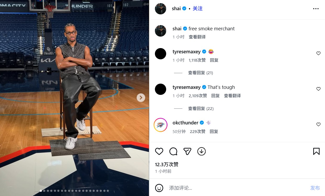 亚历山大晒出了一组照片,并配文“free smoke merchant”(免费烟草商)。这条配文似乎是在暗指“罚球商人”(free throw merchant)这个黑称,有些人因为亚历山大罚球次数过多而这样讽刺他。