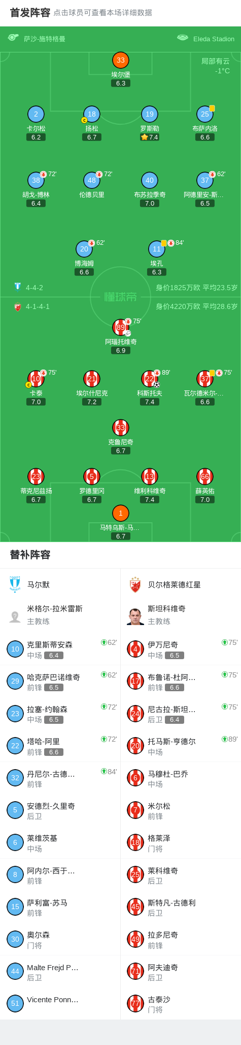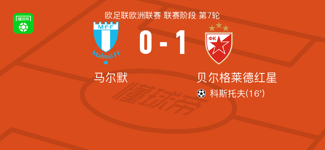 贝尔格莱德红星1-0马尔默,科斯托夫一剑封喉