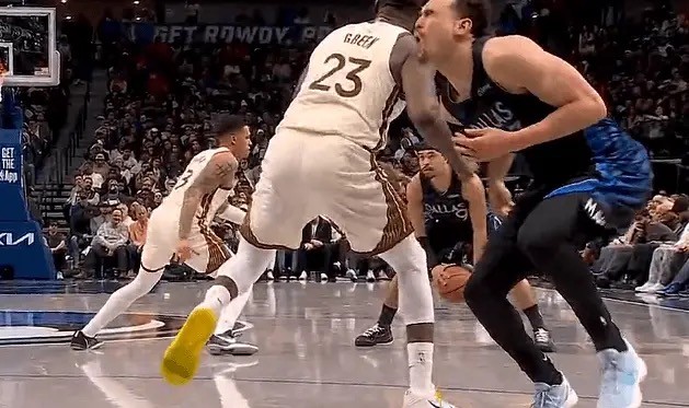 比赛进行到第四节时,勇士前锋格林在进行无球掩护挡拆时肘击独行侠中锋鲍威尔。