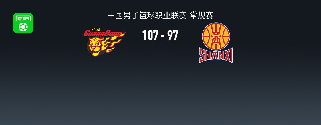 第四节广东胡明轩拿下6分,山西哈米杜-迪亚洛拿下14分,最终广东107-97战胜山西