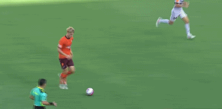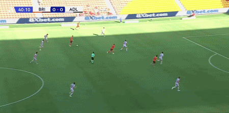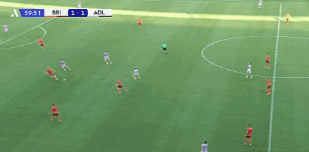 第41分钟,萨姆-克莱因外围远射破门,布里斯班狮吼1-0阿德莱德联