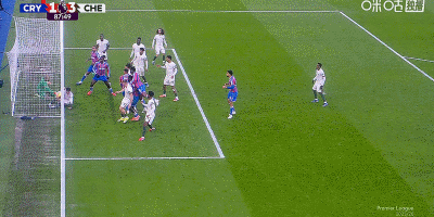 第88分钟,扳回一城,理查兹门前头球破门,水晶宫1-3切尔西