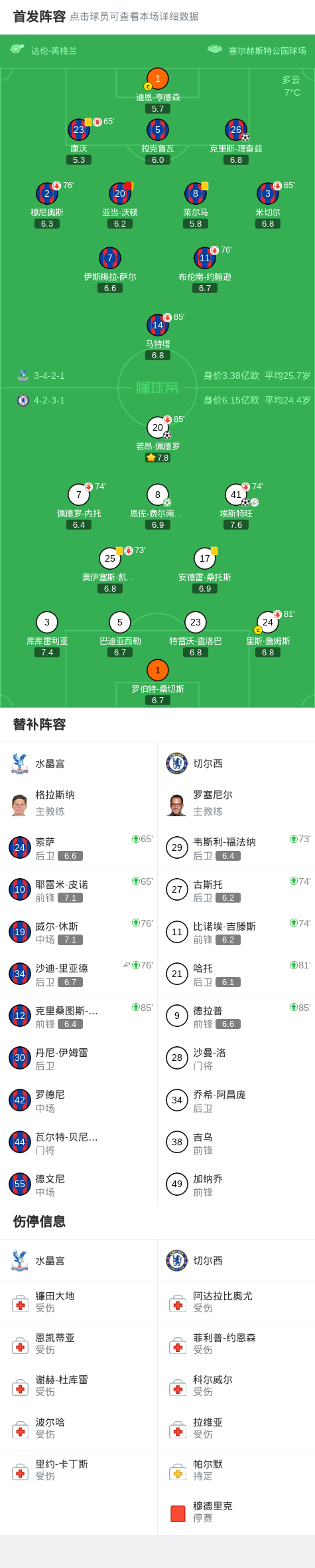 第34分钟,埃斯特旺奔袭半场,随后冷静破门,切尔西1-0水晶宫