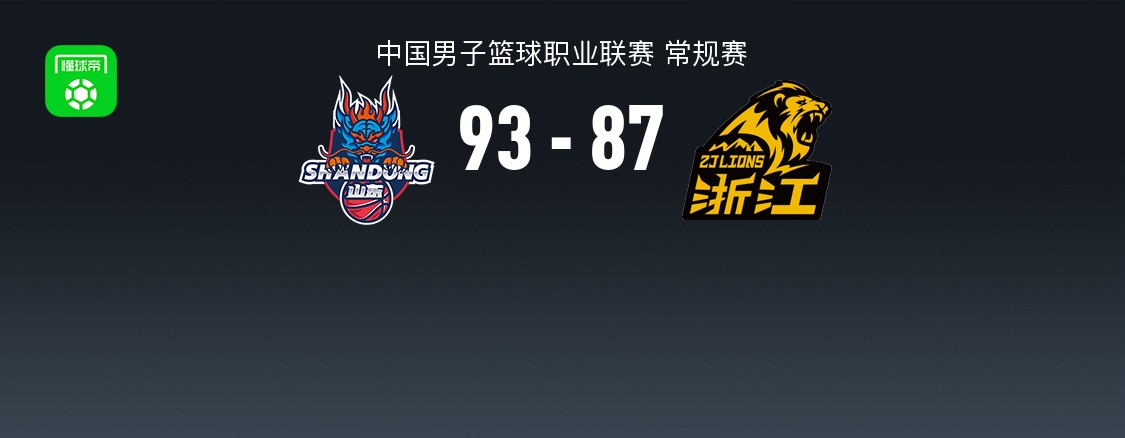 第四节山东陶汉林拿下6分,广厦巴里-布朗拿下21分,最终山东93-87战胜广厦