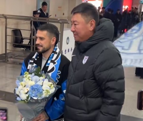 北京时间1月25日晚间,斯坦丘乘坐飞机抵达大连周水子国际机场,英博总经理陈东赴机场接机。