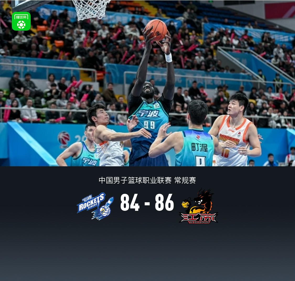 北京时间1月25日中国男子篮球职业联赛 常规赛,宁波町渥对阵江苏肯帝亚。半场宁波37-53江苏,最终宁波84-86江苏。