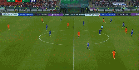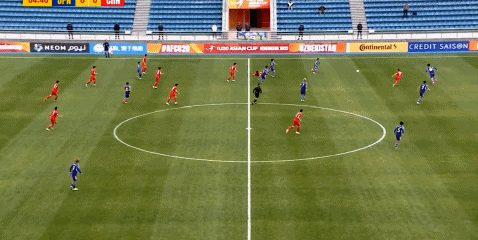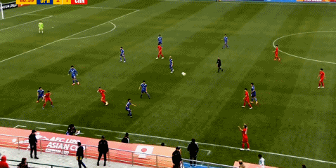球权重新回到日本队脚下,被对手发展到右路进行多番试探: