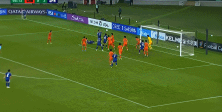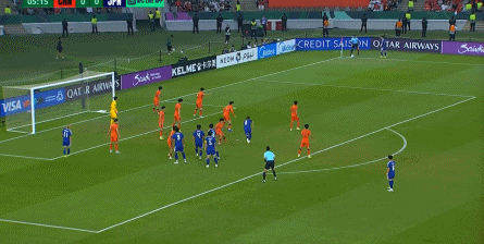 第二,这说明了日本队在起球的时候,身处相当大的空间,所以能调整脚法,瞄准后点。