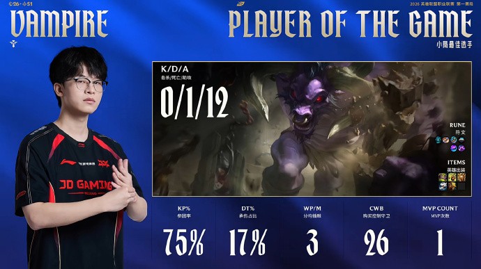 北京时间1月26日,BLG再战JDG。BLG再次在第一局拿到大优势的情况下将优势悉数送出遭到翻盘,第二局Xiaoxu天肥狼母所向披靡但同样也被翻盘,第三局JDG拿出发育阵容并小龙节奏无敌成功拿下比赛,JDG最终2-1再次战胜BLG。