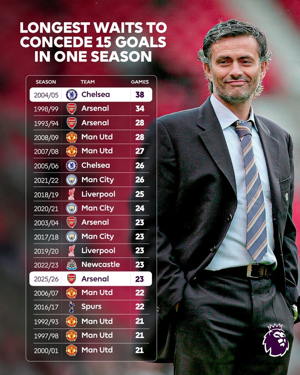 这意味着切尔西2004-05赛季在穆里尼奥的带领下创造的英超历史单赛季最少丢球纪录(38场15球)又保住了一个赛季。