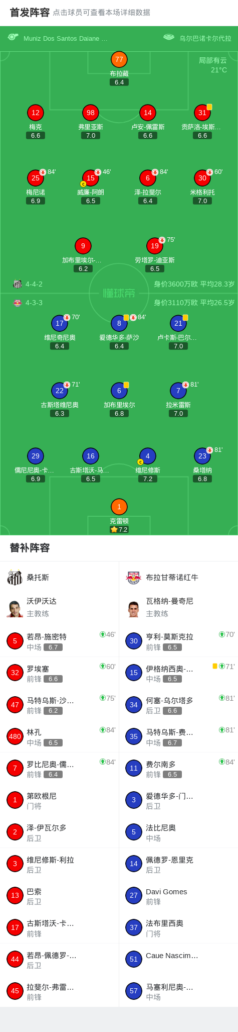 北京时间1月26日巴西圣保罗州锦标赛 第一阶段 第5轮,桑托斯对阵布拉甘蒂诺红牛。最终比分桑托斯 0–0 布拉甘蒂诺。