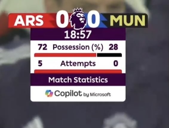 比赛开局阶段阿森纳占据绝对优势,根据前19分钟的技术统计,阿森纳的控球率高达72%,曼联仅为18%,前19分钟枪手还尝试了5脚射门,而红魔的射门次数仍为0。