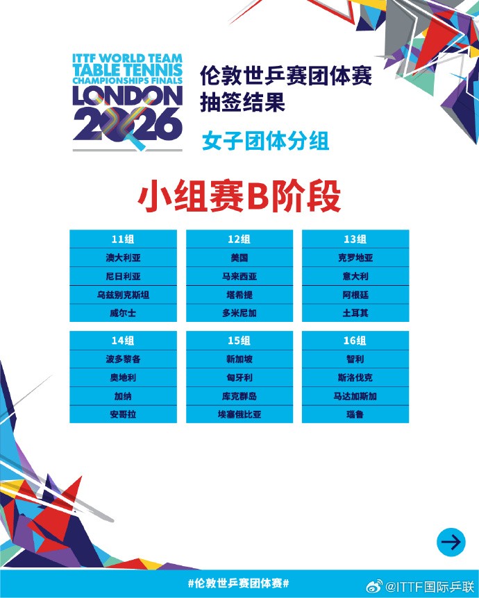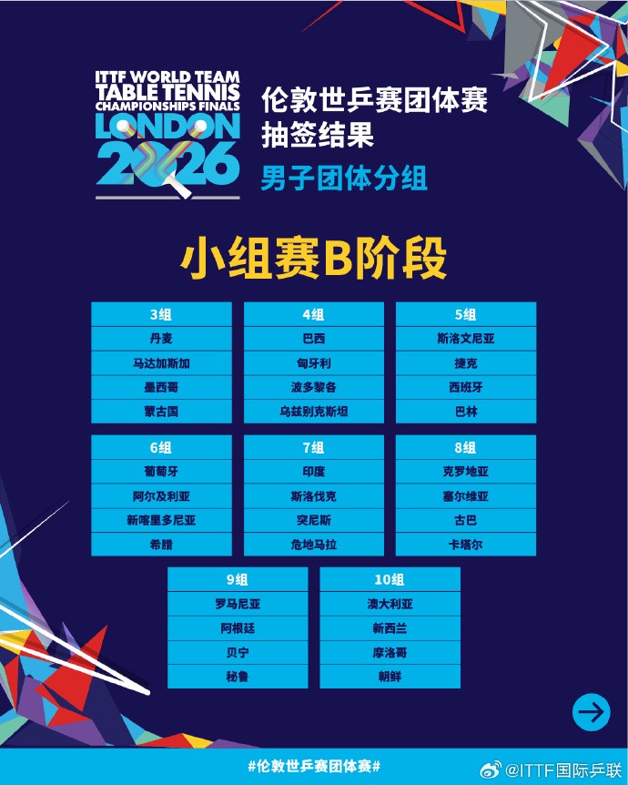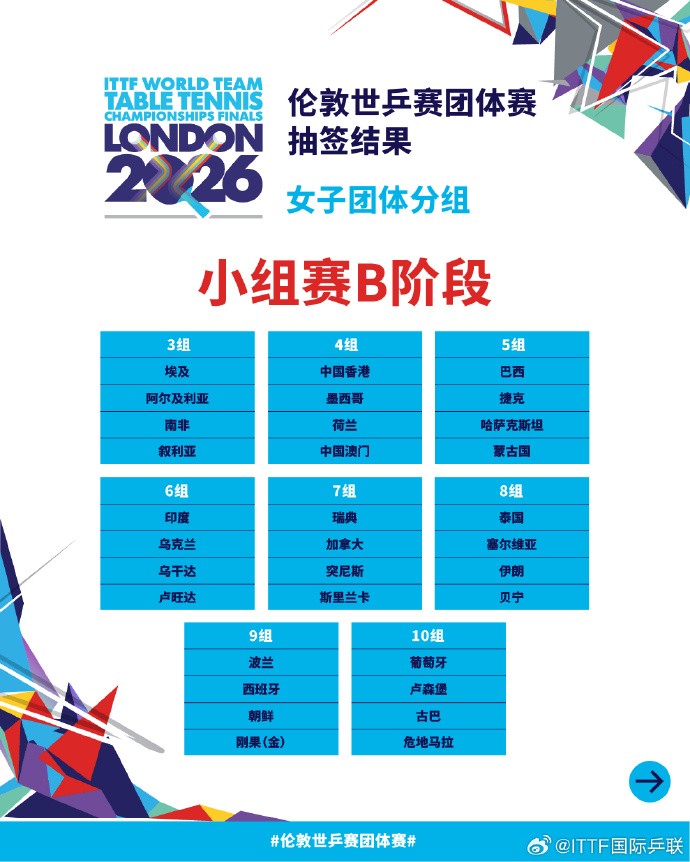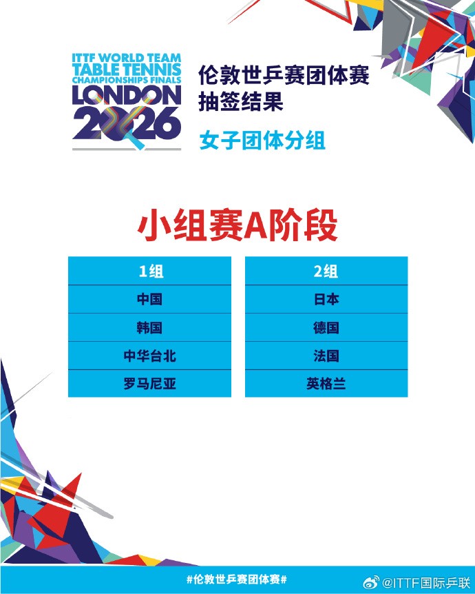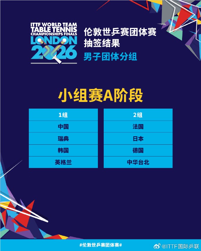 北京时间1月26日,2026年伦敦世乒赛团体赛抽签结果出炉。本届世乒赛团体赛采用全新的赛制,男子团体和女子团体各有64支队伍参赛。