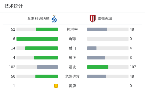 莫斯科迪纳摩1-1成都蓉城,马特乌斯-茹萨破门,胡安-卡塞雷斯扳平比分