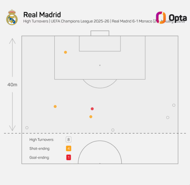 皇马全队完成了55次抢回球权,这是本赛季联赛第四高的数据,找回了久违的防守韧性。