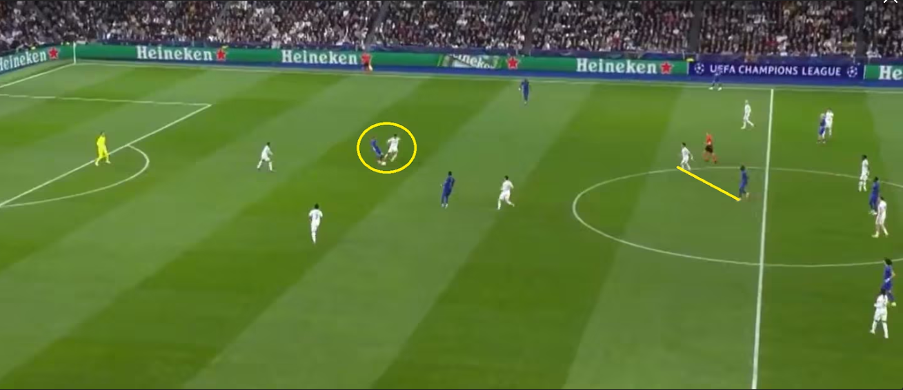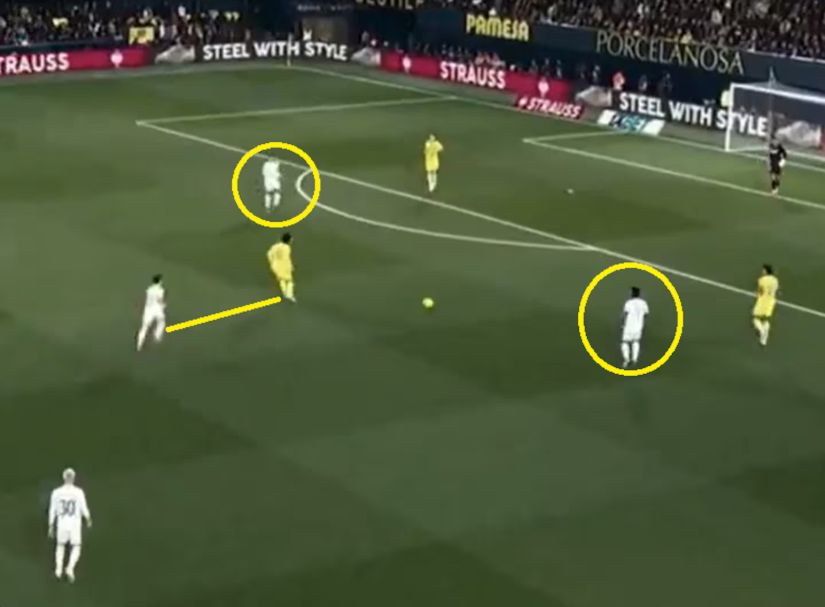 皇马进攻时阵型变成1-4-1-4-1,球员在对方防线之间不停跑动换位,用横向转移和长传球(这场有52次,比场均多7次)调动对手。