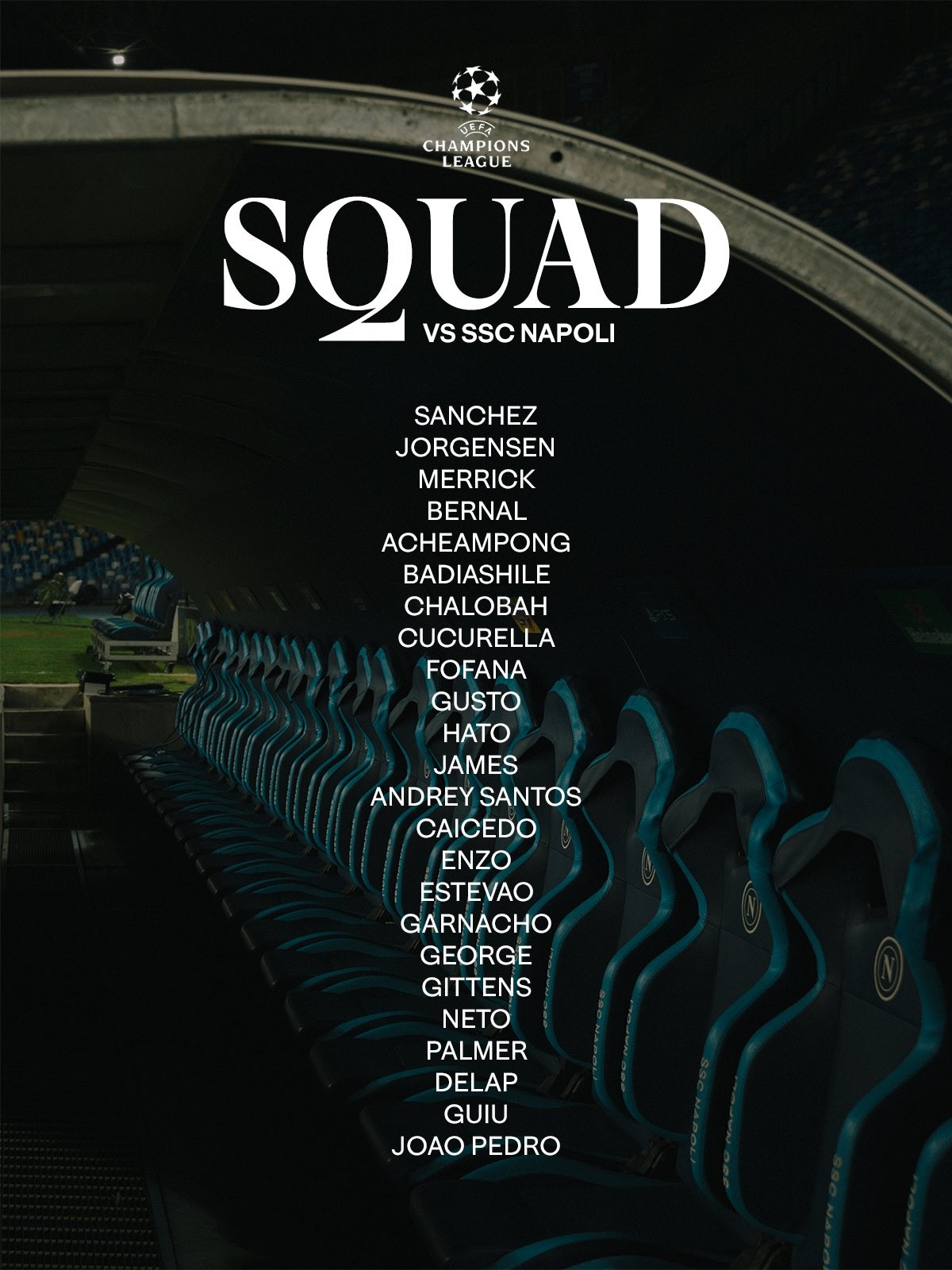 北京时间1月28日,切尔西公布了欧冠联赛阶段末轮他们主场迎战意甲卫冕冠军那不勒斯的大名单,帕尔默和菲利普-约恩森回归。
