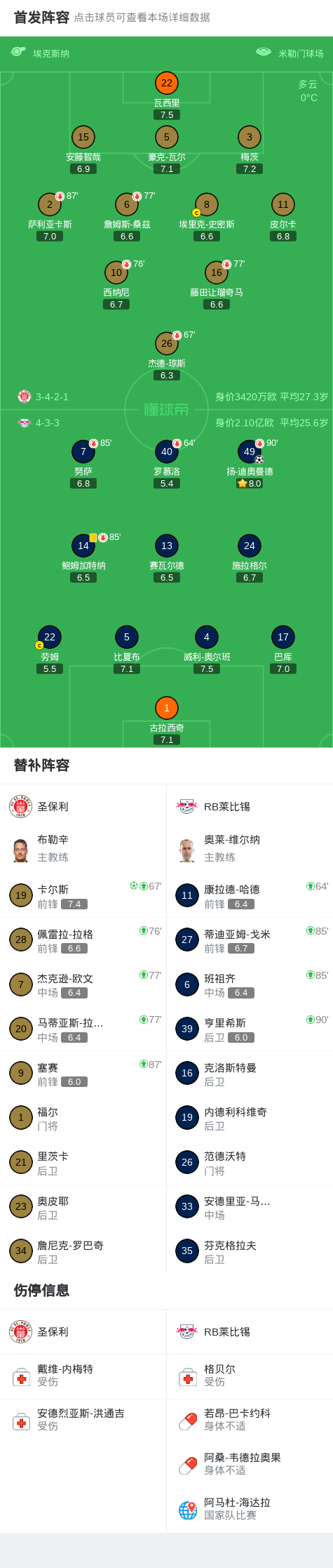 第66分钟,迪奥曼德弧顶处起脚射门得分打破僵局,莱比锡1-0圣保利