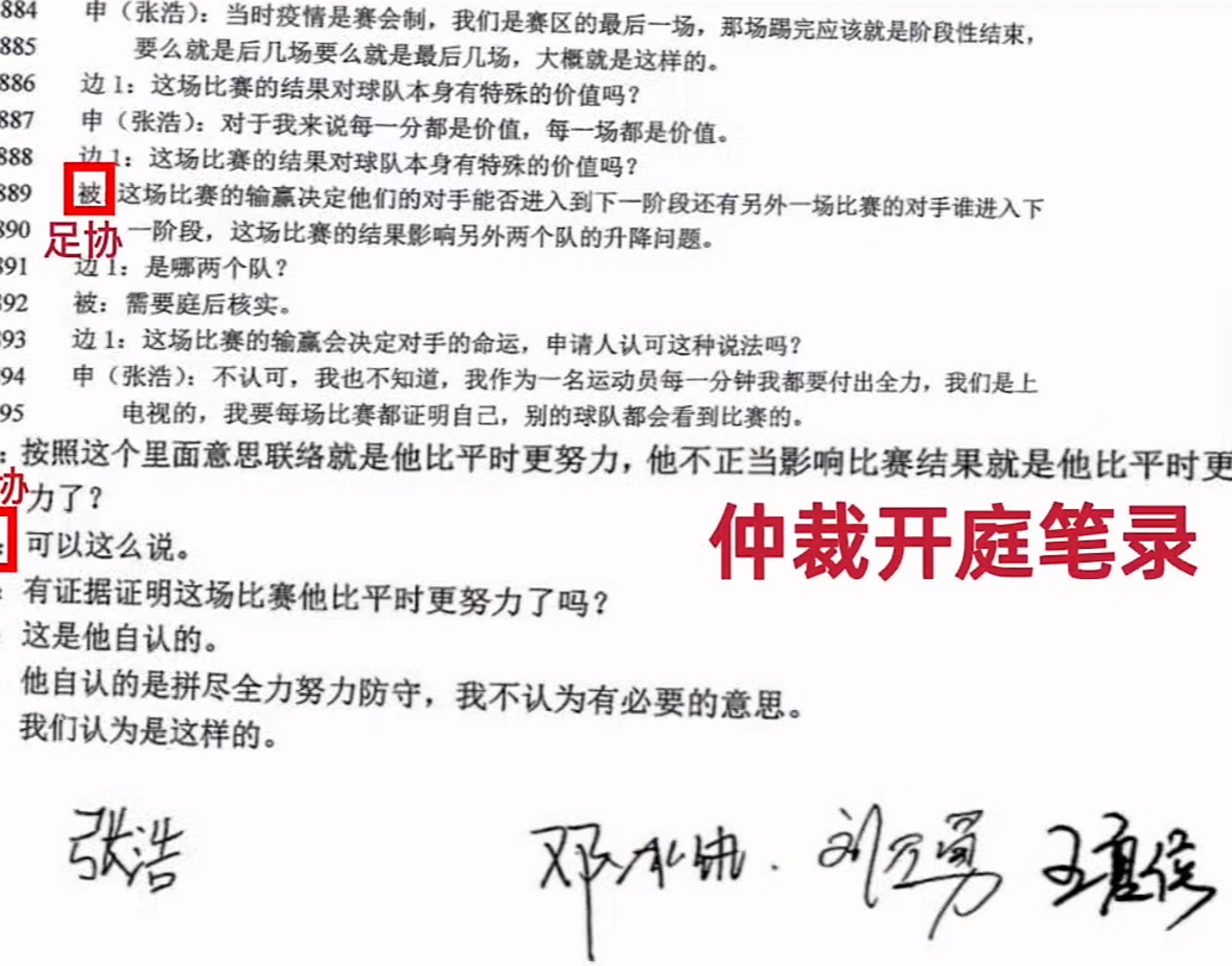 张浩在第一个视频中表示:我现在公布一小部分证据,这个证据是足协在仲裁庭上恶意把踢假球的罪名强压在我头上的证据。大白话就是他认为我努力的踢比赛,所以操纵了比赛。他认为在无关紧要的比赛当中,运动员不需要全力的去踢比赛。