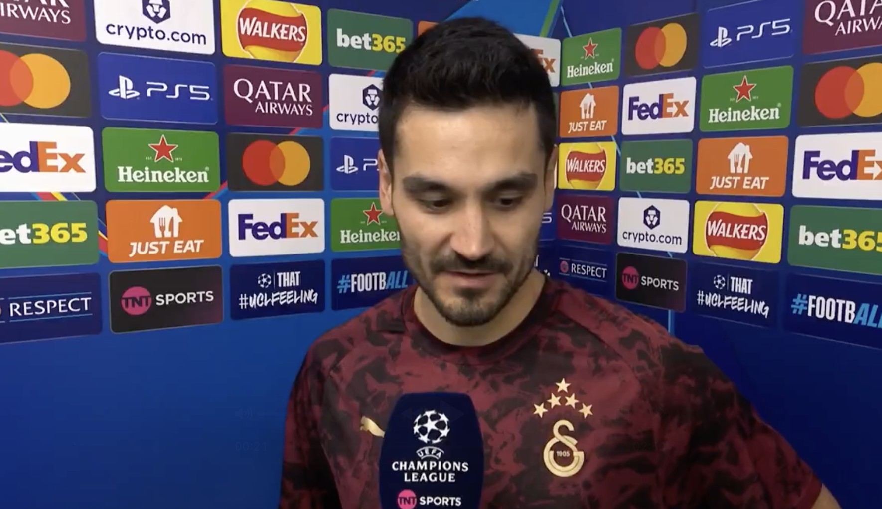 在欧冠客场0-2输给曼城后,加拉塔萨雷中场京多安接受了TNT体育的采访。