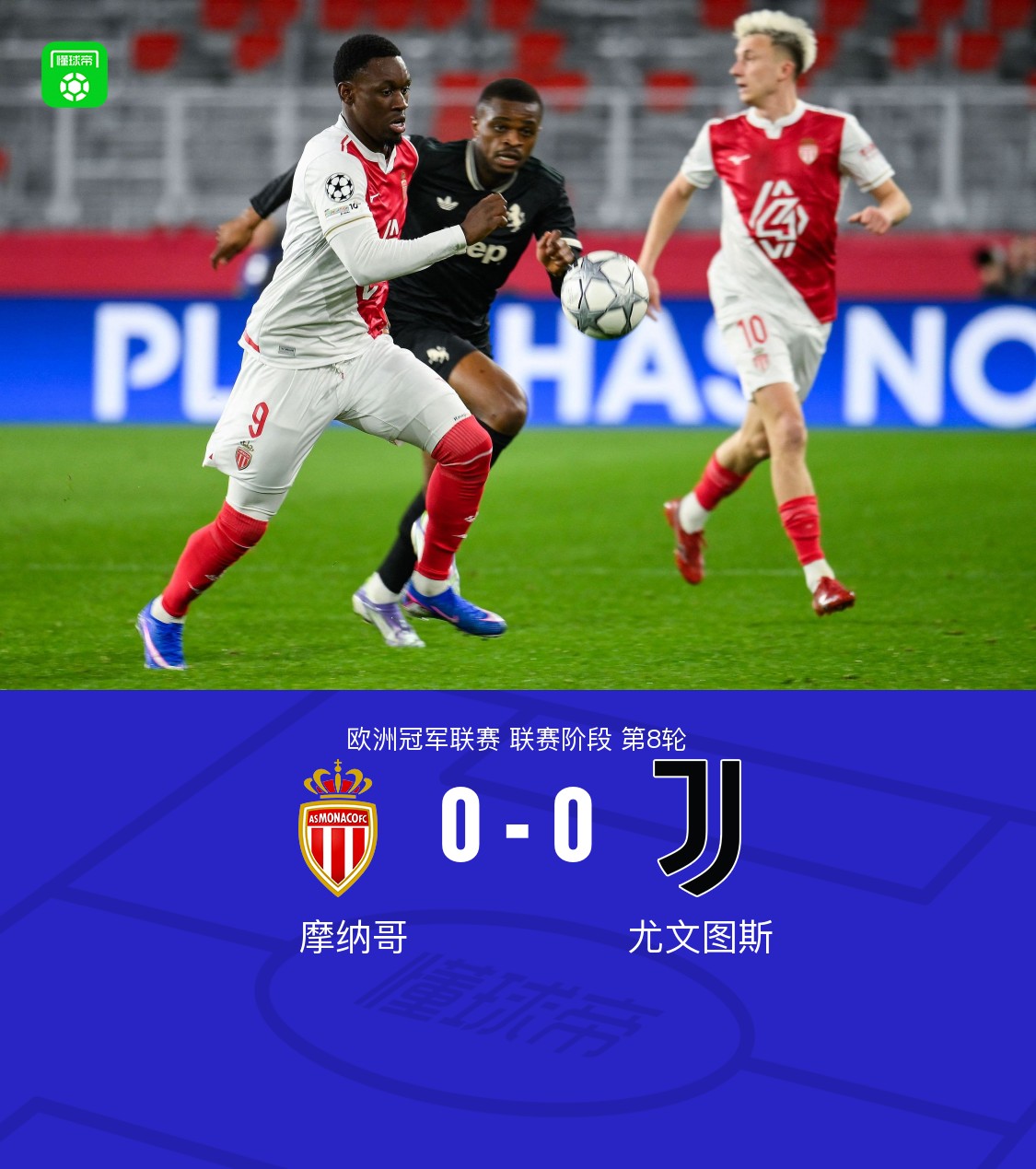 北京时间1月29日欧洲冠军联赛 联赛阶段 第8轮,摩纳哥对阵尤文图斯。巴洛贡破门,可惜进攻时推人,裁判判罚进球无效。最终比分摩纳哥 0–0 尤文。