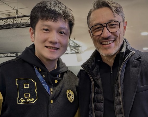 赛后,樊振东在自己的社交媒体上晒出了与多特主教练科瓦奇的合影,作为皇马球迷,他感叹道:“一个艰难的夜晚,看到多特蒙德和皇家马德里双双输球,确实令人心痛。但足球的魅力就在于,永远还有明天。我们经历过更艰难的时刻,也一定会以更强的姿态归来。”