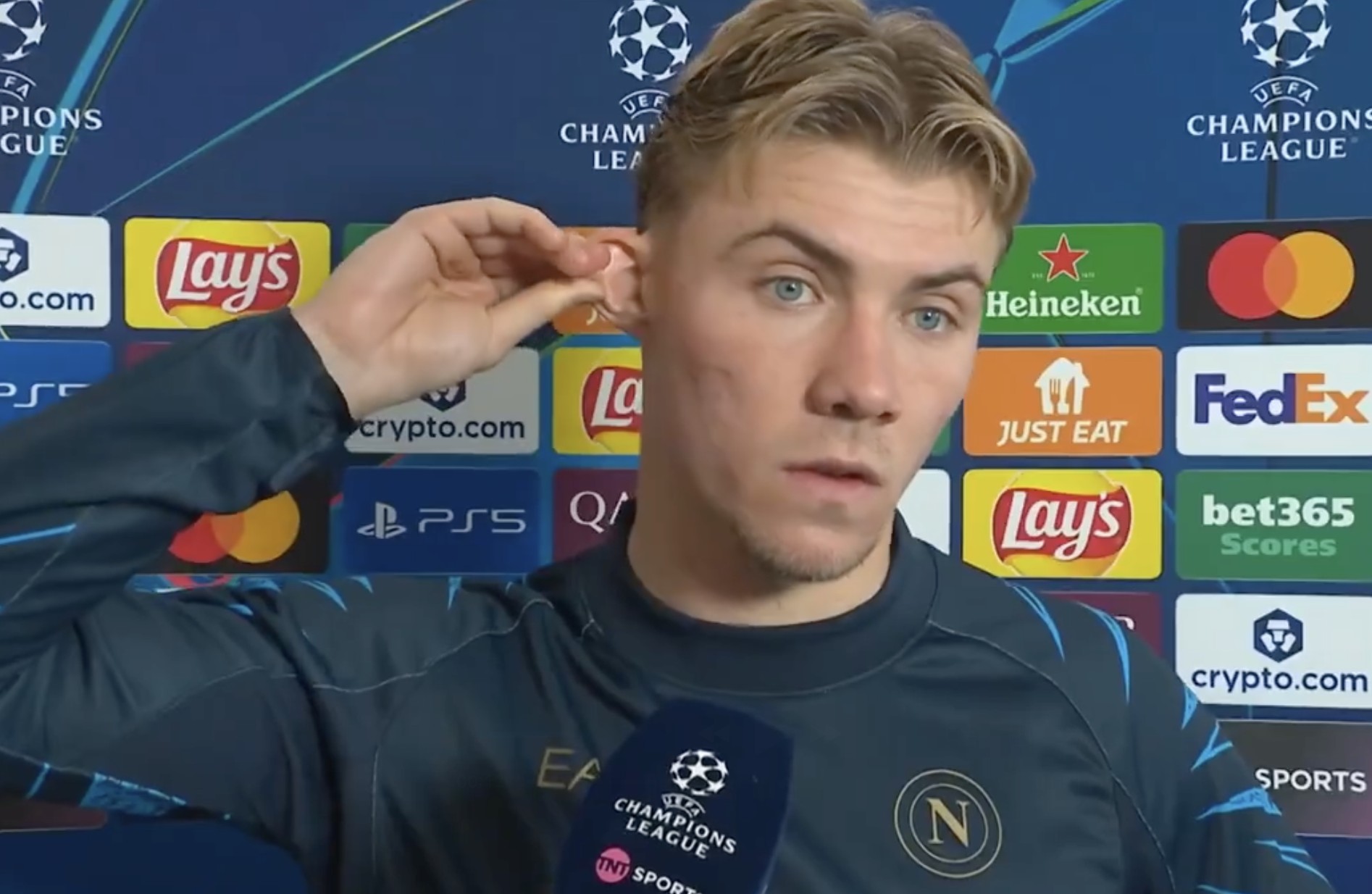欧冠主场2-3不敌切尔西后,此役打入一球的那不勒斯前锋霍伊伦接受了TNT体育的采访。