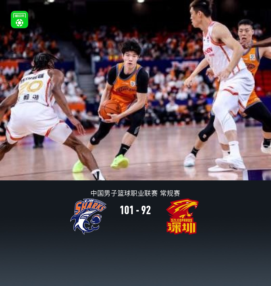 第四节上海怀特塞德拿下7分,深圳贺希宁拿下9分,最终上海101-92战胜深圳