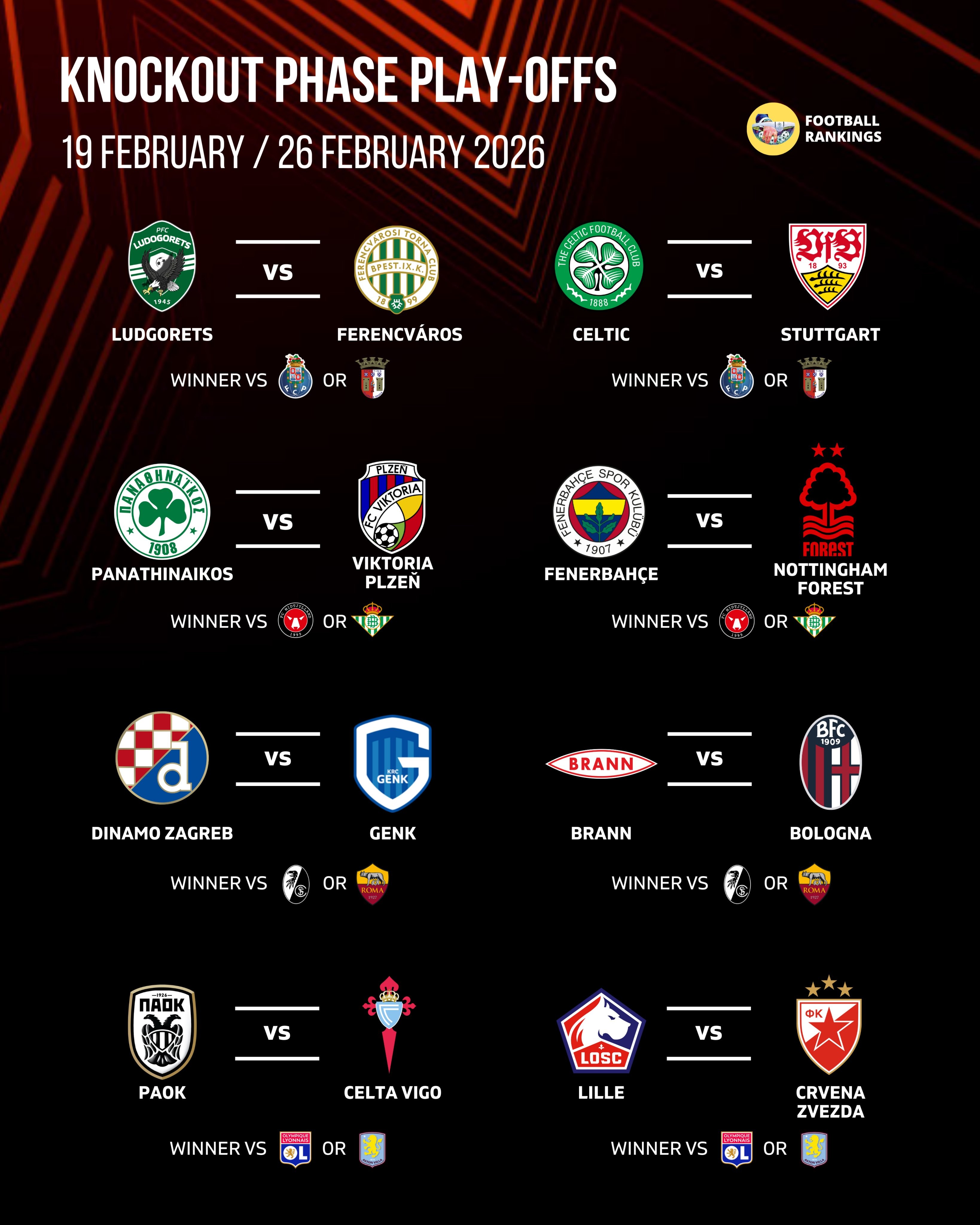 北京时间1月30日,2025/26赛季欧联淘汰赛附加赛抽签仪式在瑞士尼翁的欧足联总部进行,在附加赛中,诺丁汉森林即将迎战费内巴切,斯图加特将迎战凯尔特人。