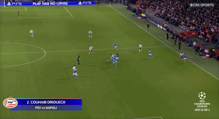 PSV埃因霍温主场大胜那不勒斯比赛中,埃因霍温打出一次绝妙团队配合,最终德里乌赫轰出一粒高质量射门画上完美句号。