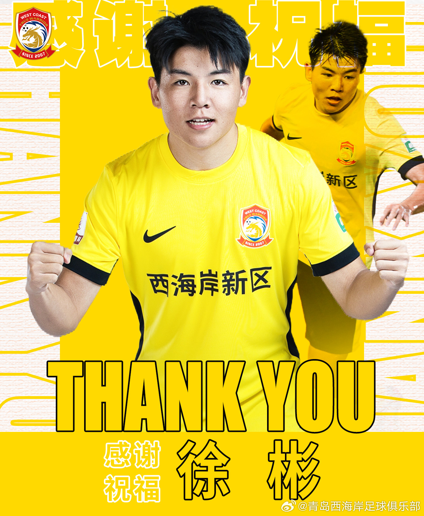 经与球员徐彬及相关俱乐部友好协商并达成一致,徐彬正式告别青岛西海岸足球俱乐部,加盟英超狼队,开启赴欧洲联赛的留洋征程。