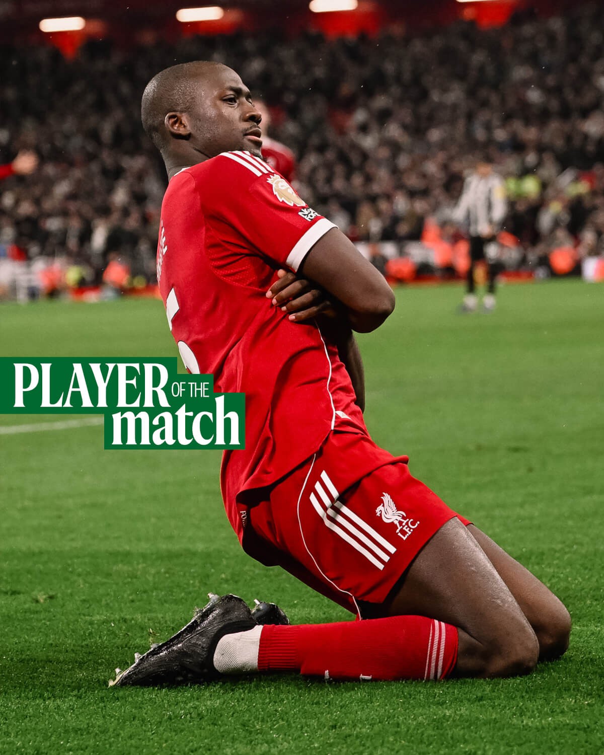 利物浦官方宣布,科纳特当选球队与纽卡斯尔联一役队内最佳球员。