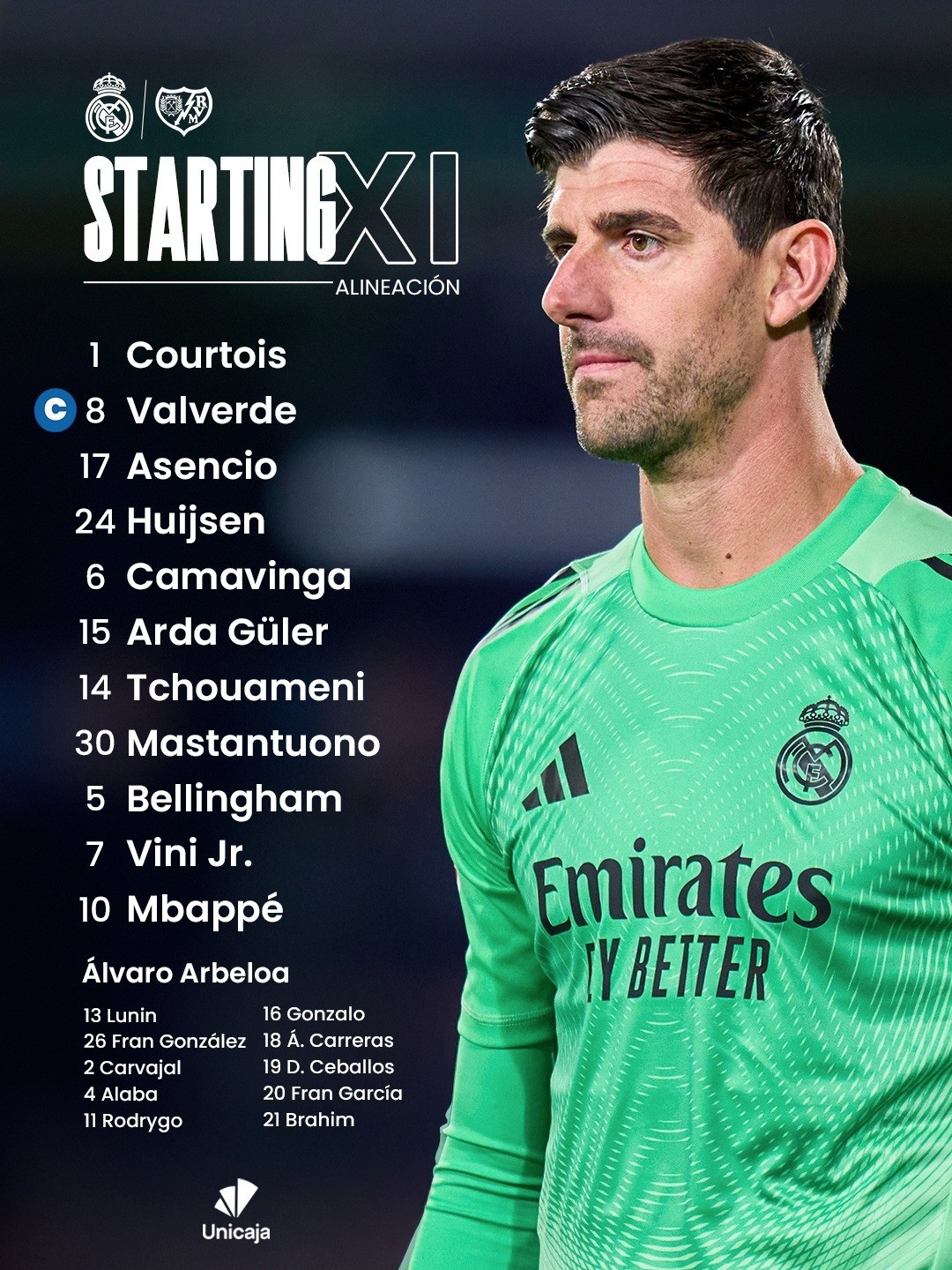 皇马vs巴列卡诺:姆巴佩、维尼修斯首发,马斯坦托诺出战