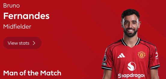 最终经过英超官网球迷投票,布鲁诺-费尔南德斯以59%的得票率当选全场最佳球员。
