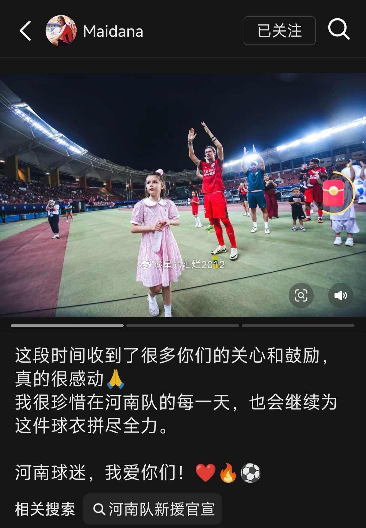 河南球迷,我爱你们!”