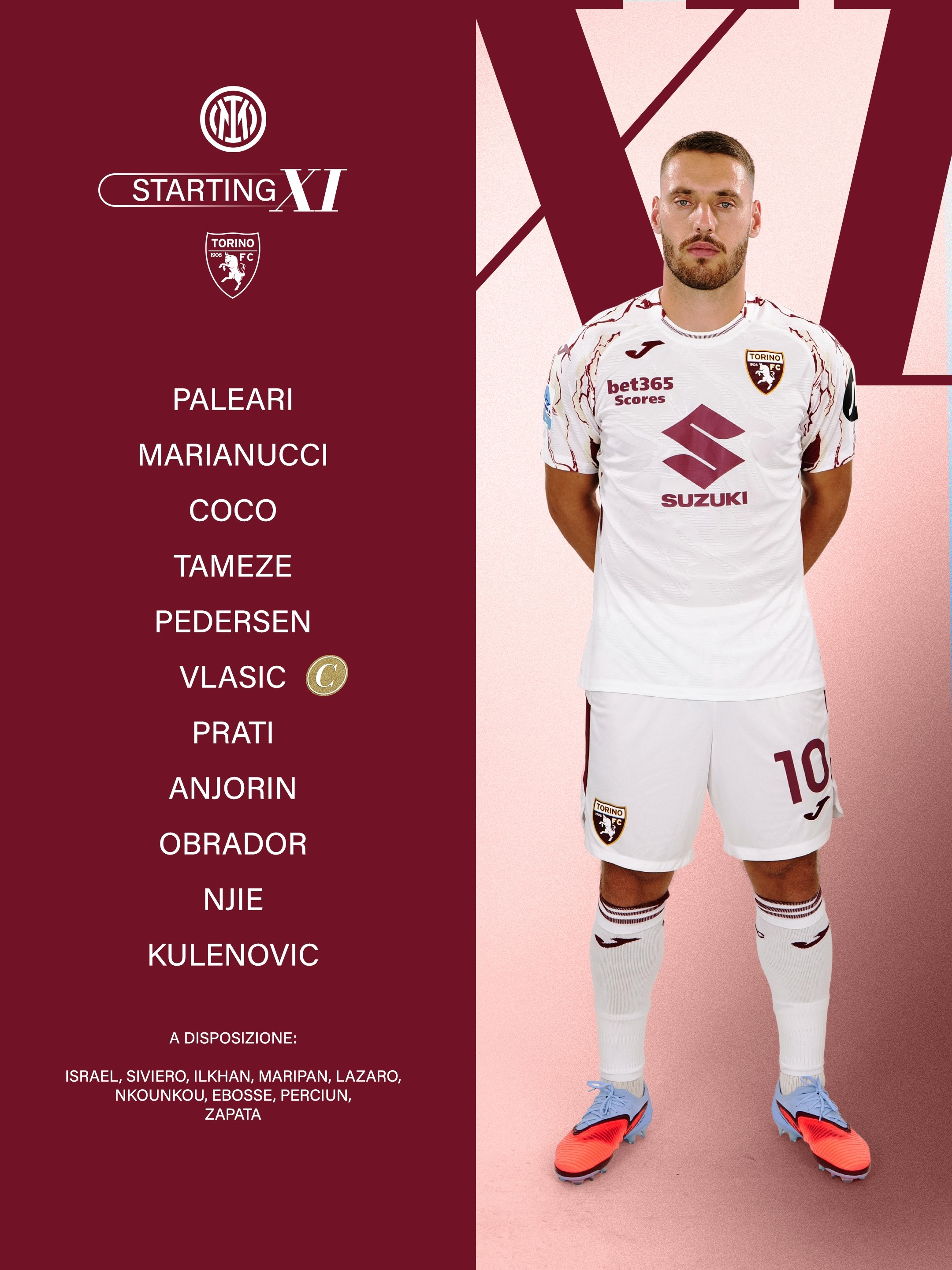 国米首发:13-何塞普-马丁内斯、43-科基、6-德弗赖、15-阿切尔比、30-奥古斯托、41-卡马特、16-弗拉泰西、22-姆希塔良、17-迪乌夫、9-图拉姆、14-博尼