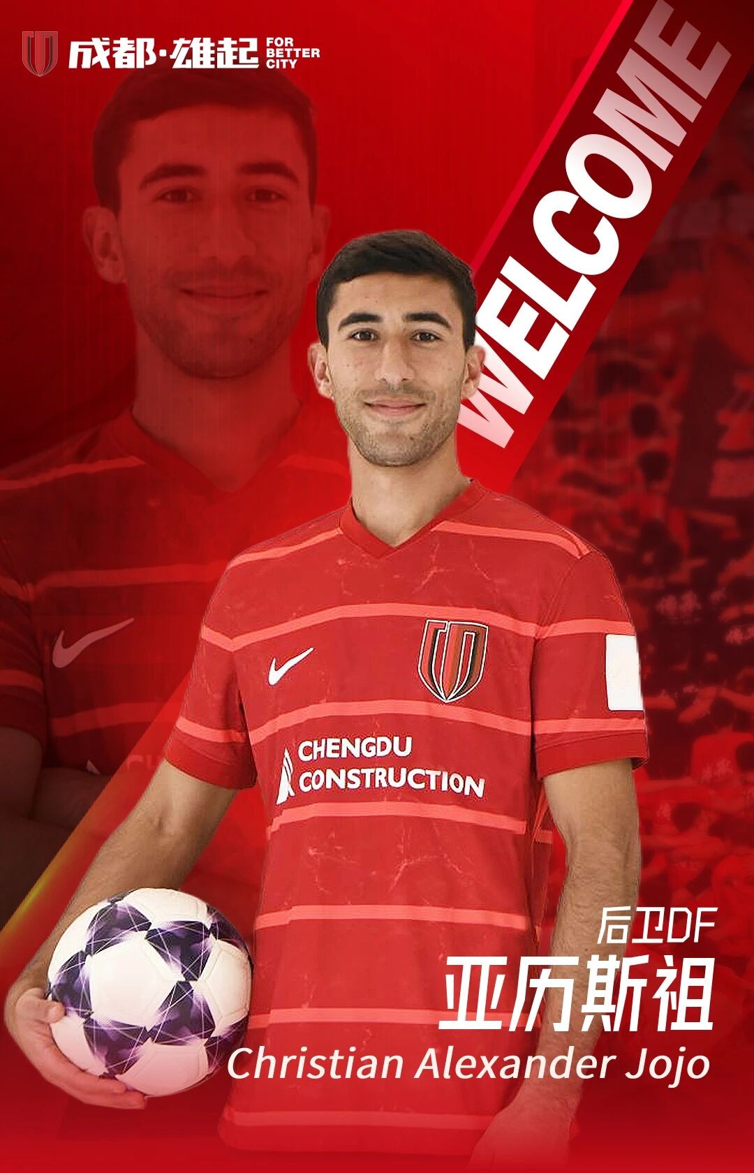 经友好协商,亚历斯祖(Christian Alexander Jojo)正式加盟成都蓉城足球俱乐部。