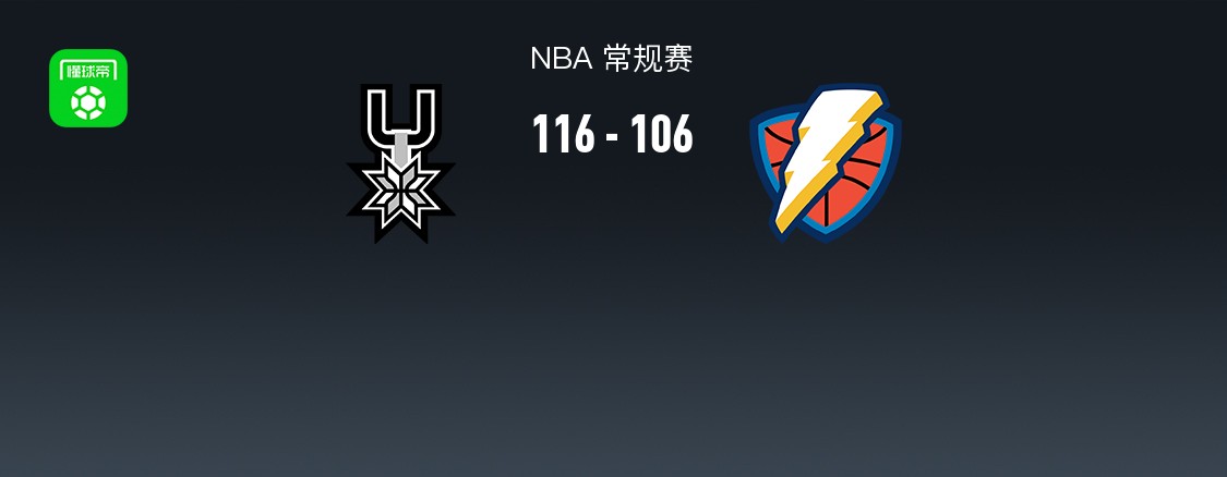 第四节,前半节双方保持混战拉锯,雷霆依靠三分得分,马刺持续冲框回应,节中段雷霆持续冲框不中,马刺连续失误,后半节上来马刺连续三分尝试不中,雷霆抓住机会追至4分,马刺卡斯尔、文班亚马联手得分稳住局面再度拉大至两位数,全场结束,马刺116-106战胜雷霆。