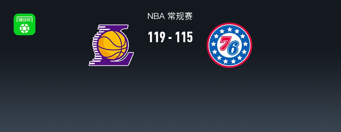 第四节湖人里夫斯拿下13分,76人马克西拿下12分,最终湖人119-115战胜76人